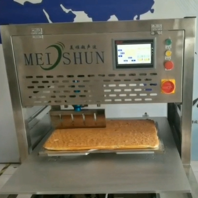 該設(shè)備配備雙把超聲波刀片,既可切方蛋糕,也可同時(shí)切兩個(gè)圓蛋糕,還具有自動(dòng)上水洗刀、安全光柵的人性化功能,效率高,更方便 |